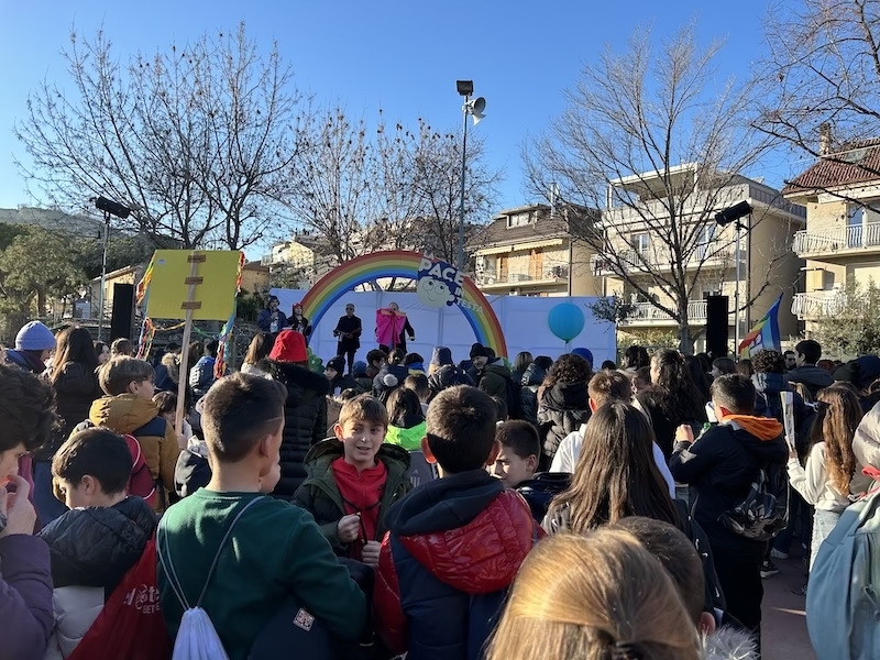 Sabato 3 febbraio, i bambini e i ragazzi della nostra Parrocchia, accompagnati dalle catechiste, hanno partecipato alla” Festa della pace”, organizzata dall’Azione Cattolica della Diocesi di San Benedetto del Tronto, Ripatransone e Montalto. Alle ore 15, presso il Parco Karol Woityla, sono stati accolti e hanno ricevuto il saluto del Vescovo Mons. Carlo Bresciani. Viene letto il brano della Genesi del diluvio universale che trova al suo termine l’arcobaleno. Infatti l’arcobaleno diventa il simbolo della festa della pace. Il vescovo dopo una breve riflessione dà la sua benedizione. Successivamente, chiamati a riflettere sul tema della pace, i partecipanti hanno avuto modo di svolgere diverse attività dislocate presso le palestre del Liceo classico, del Liceo scientifico, dell’Utes e nei locali della Parrocchia di Sant’Antonio. In particolare, presso le palestrine dell’Utes, i piccolissimi hanno incontrato i nostri giovani animatori che con entusiasmo hanno animato uno dei giochi previsti, “Arcopace”. Alle ore 17.30, tutti nuovamente al Parco Woityla per la merenda e per i saluti. Si conclude così uno splendido pomeriggio condiviso. Si torna a casa con la promessa di impegnarsi per la costruzione della pace, per la custodia della casa comune che abitiamo e per la cura dei fratelli che ci circondano.